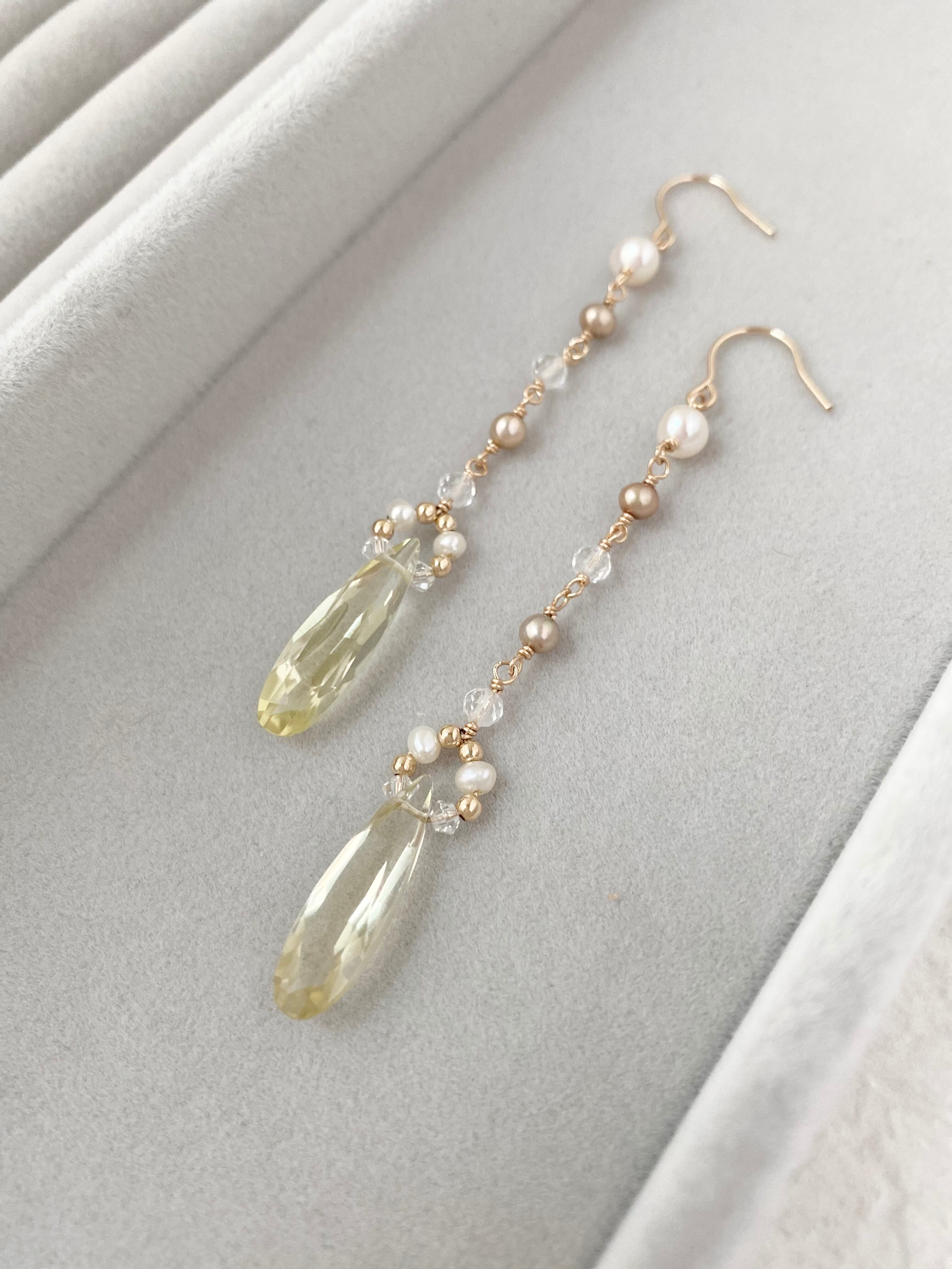 AAA級 レモンクォーツと天然パールのピアス【14KGF】※イヤリング変更可 rito 230159