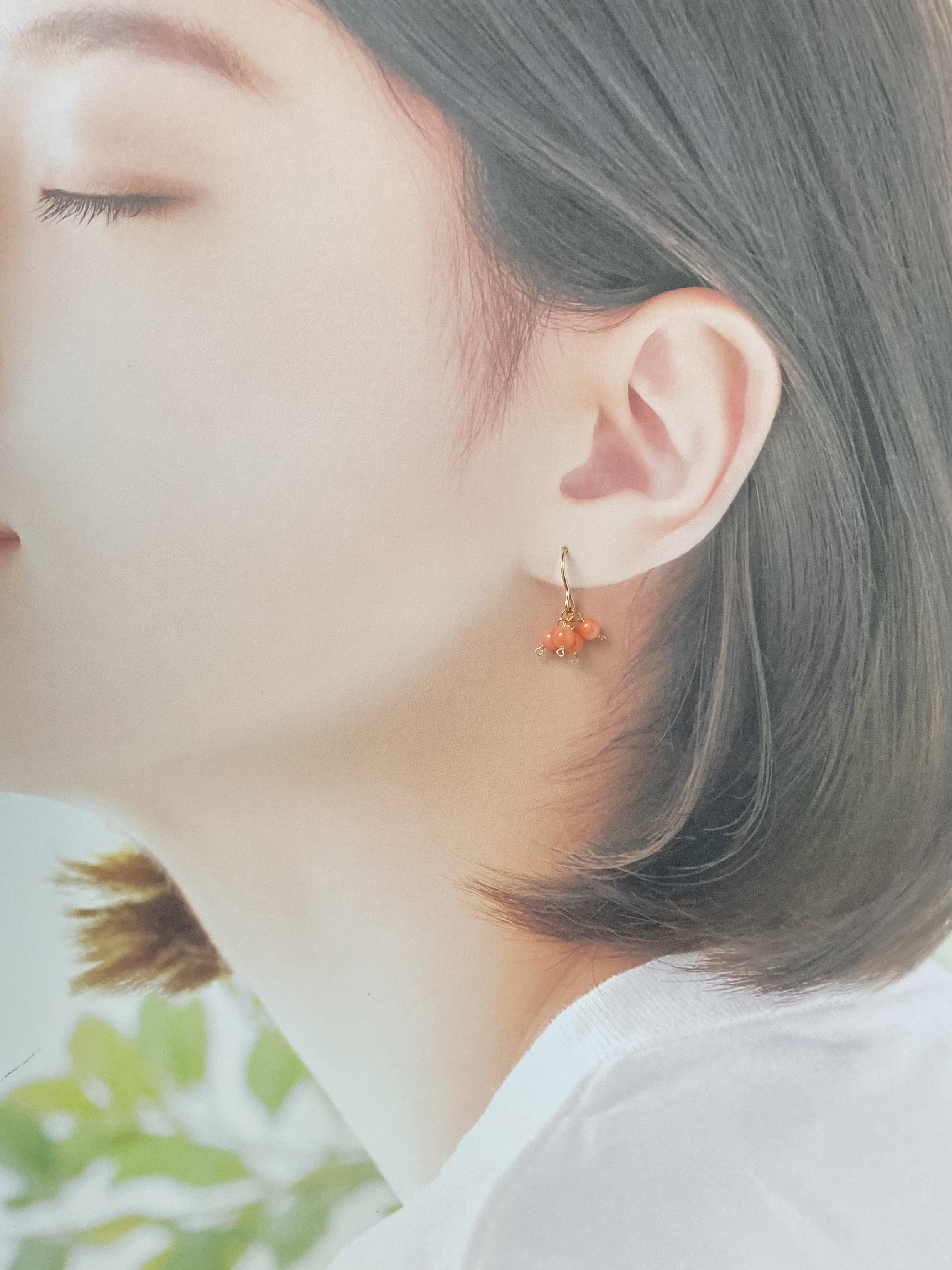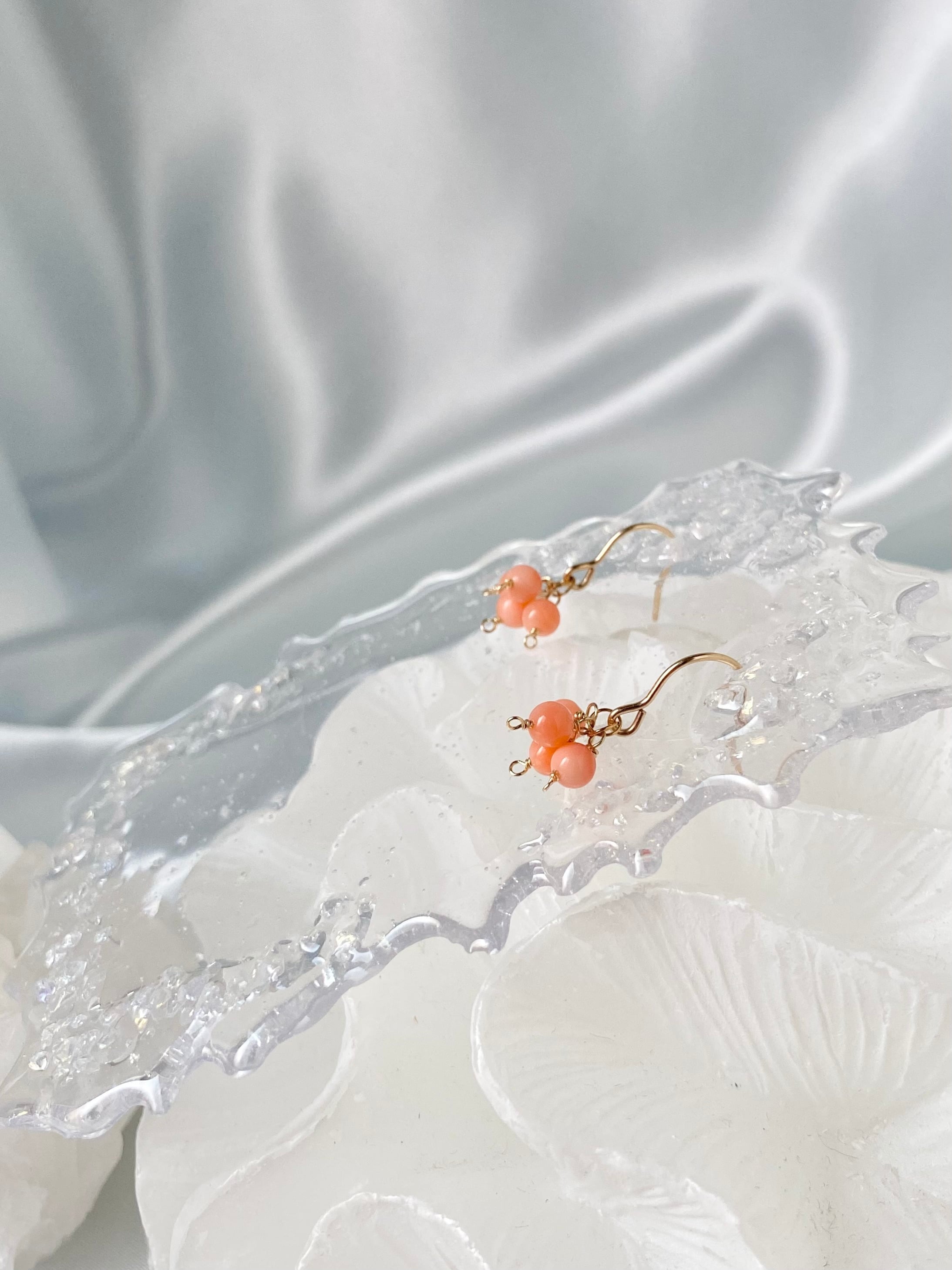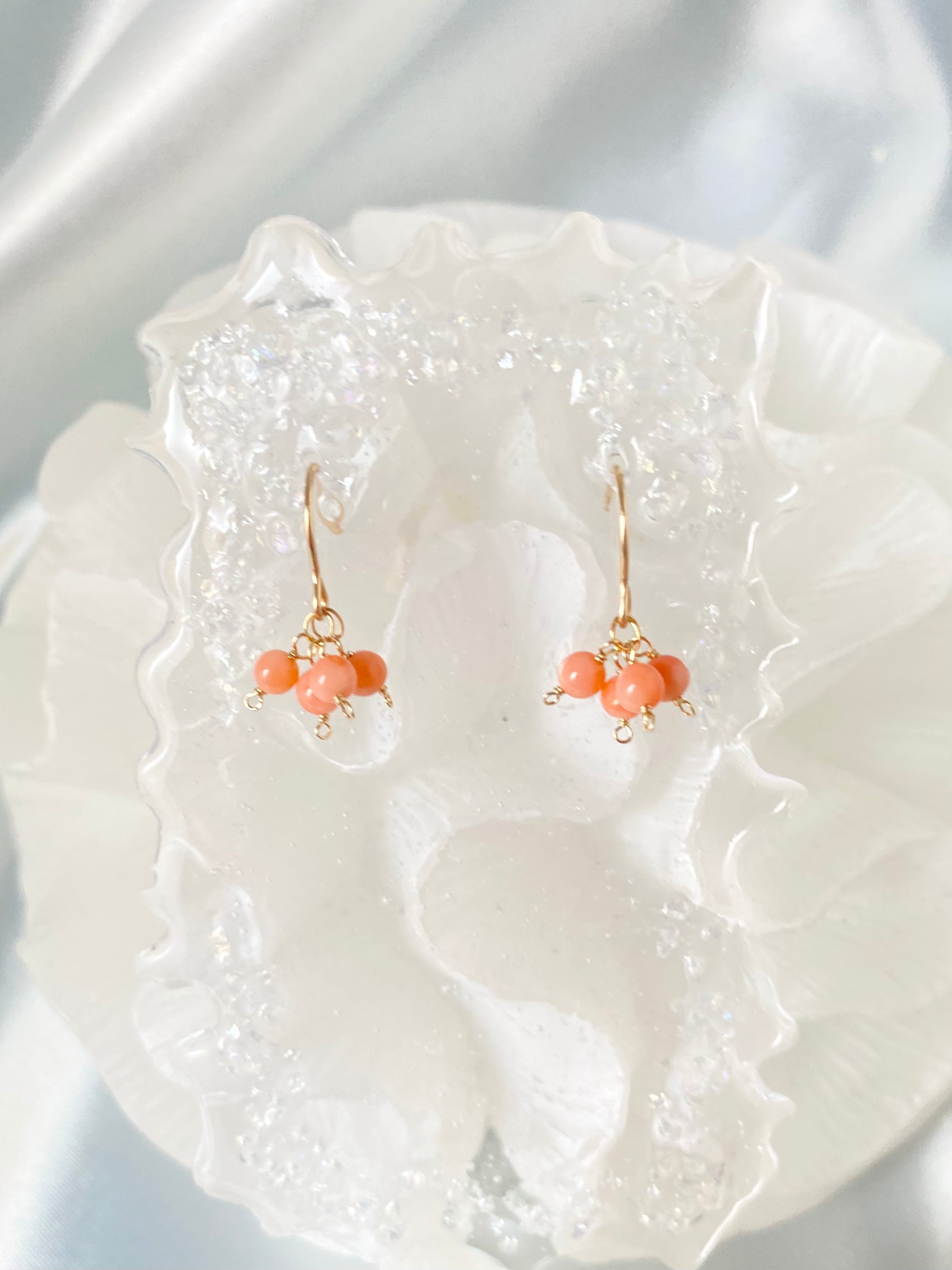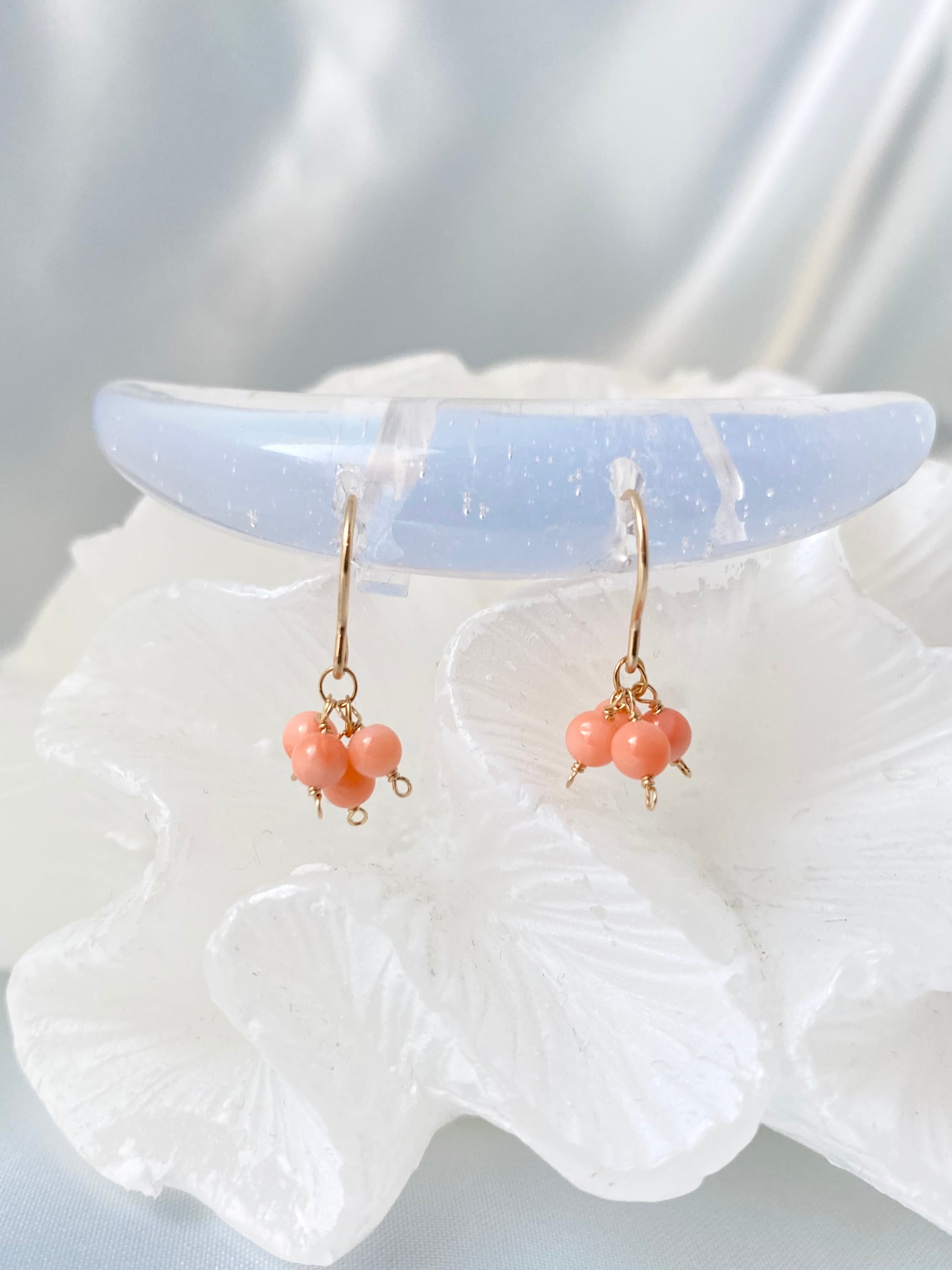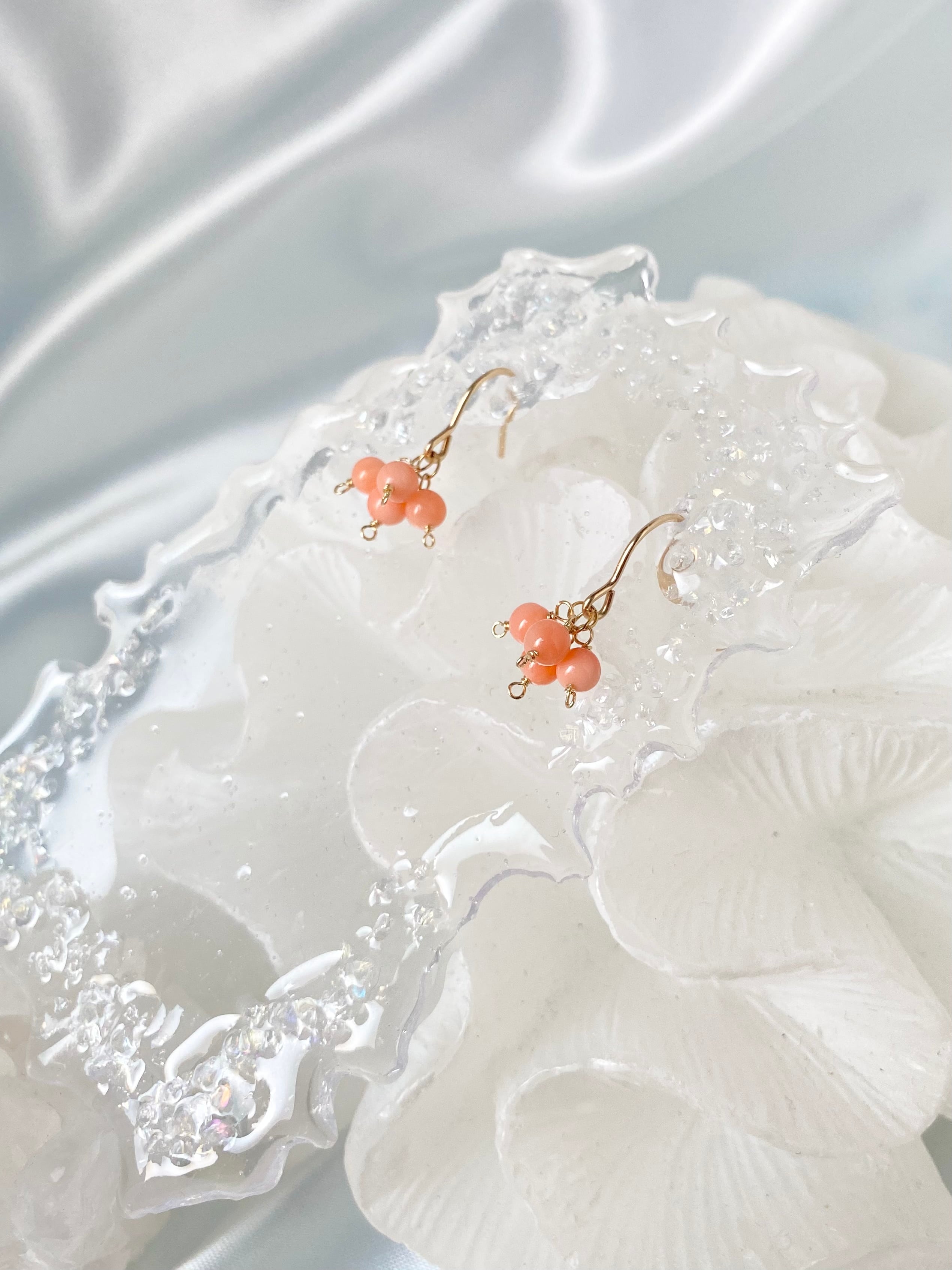 無着色天然珊瑚|モモイロサンゴの小さなピアス【14KGF】※イヤリング変更可