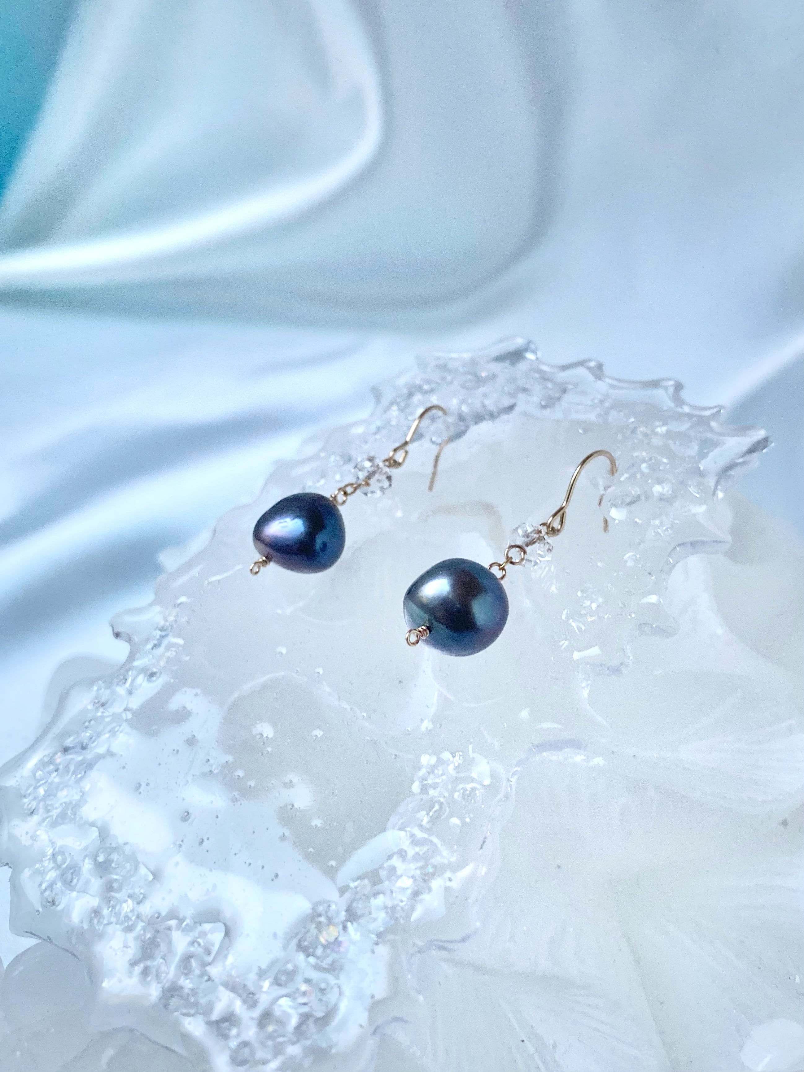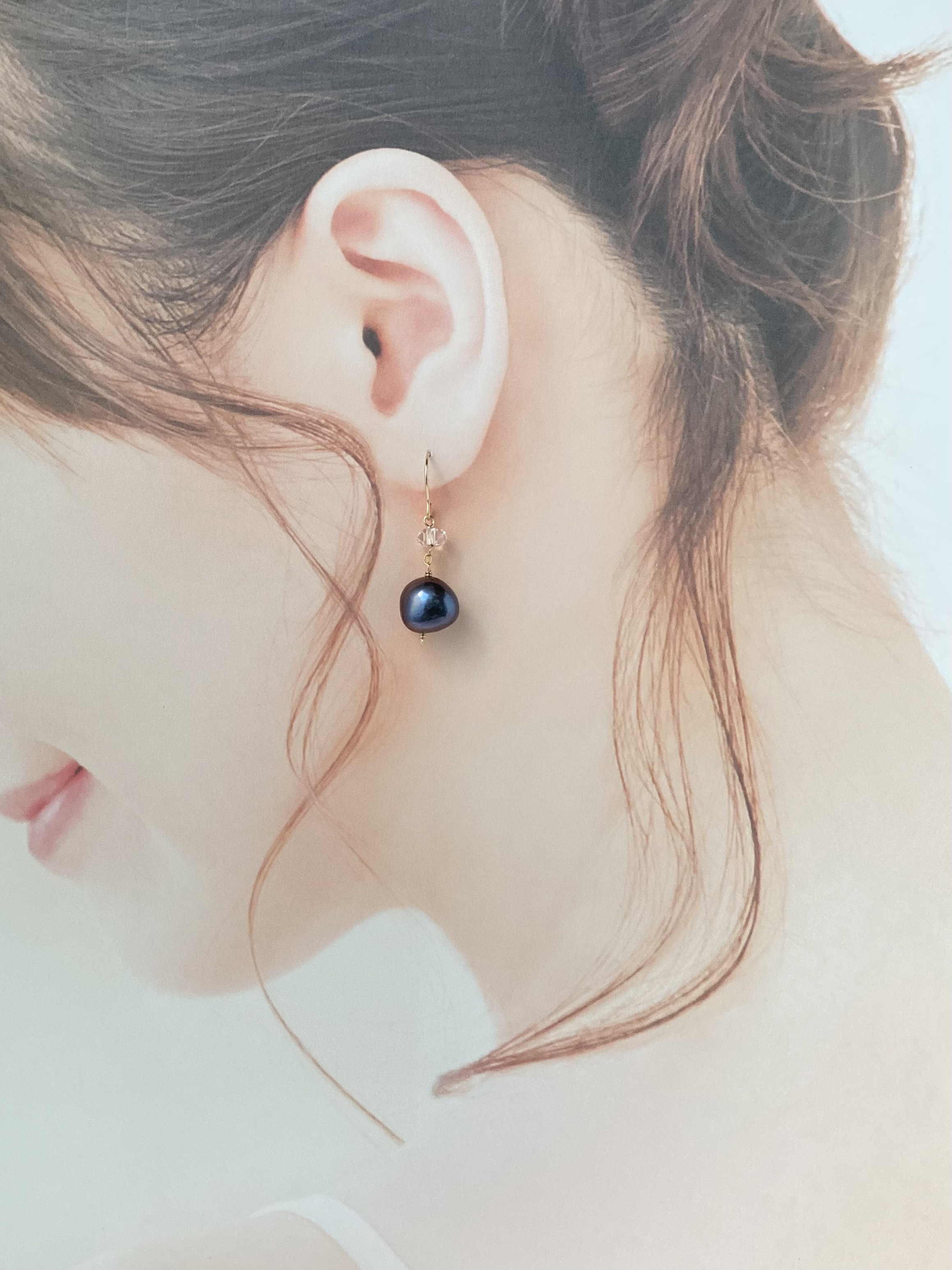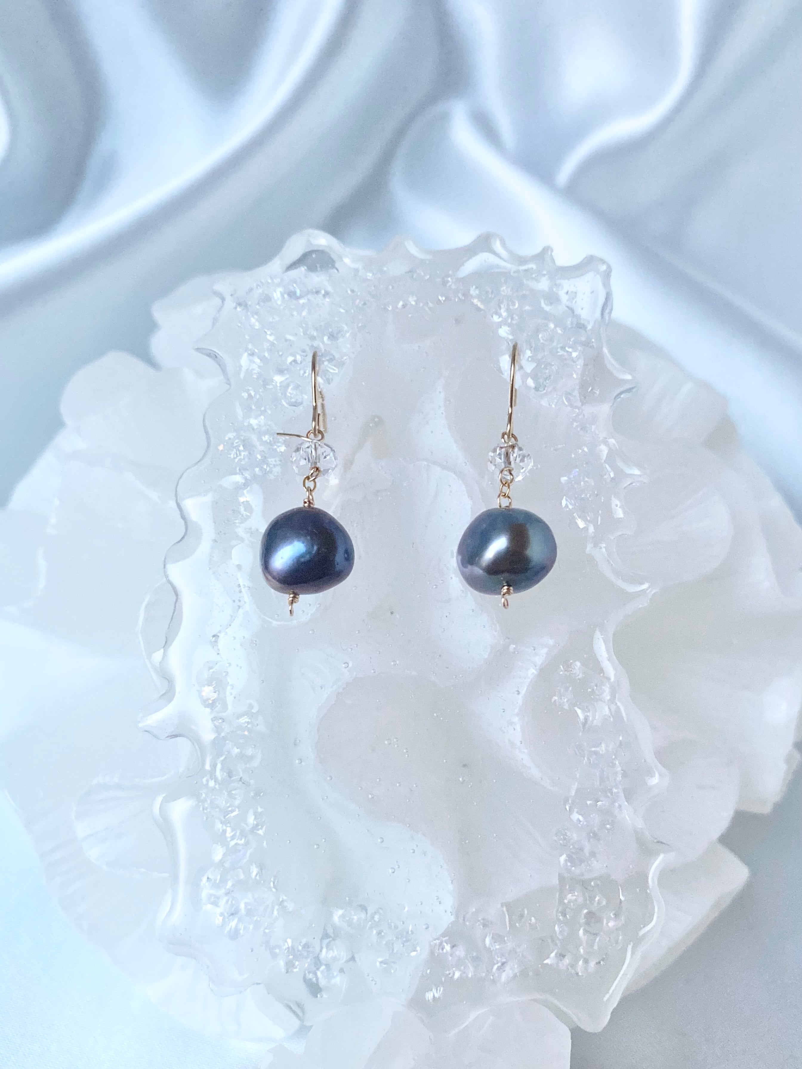 【小さな宝物展】訳あり|ダークパープルの天然パールのシンプルピアス【14KGF】※イヤリング変更可