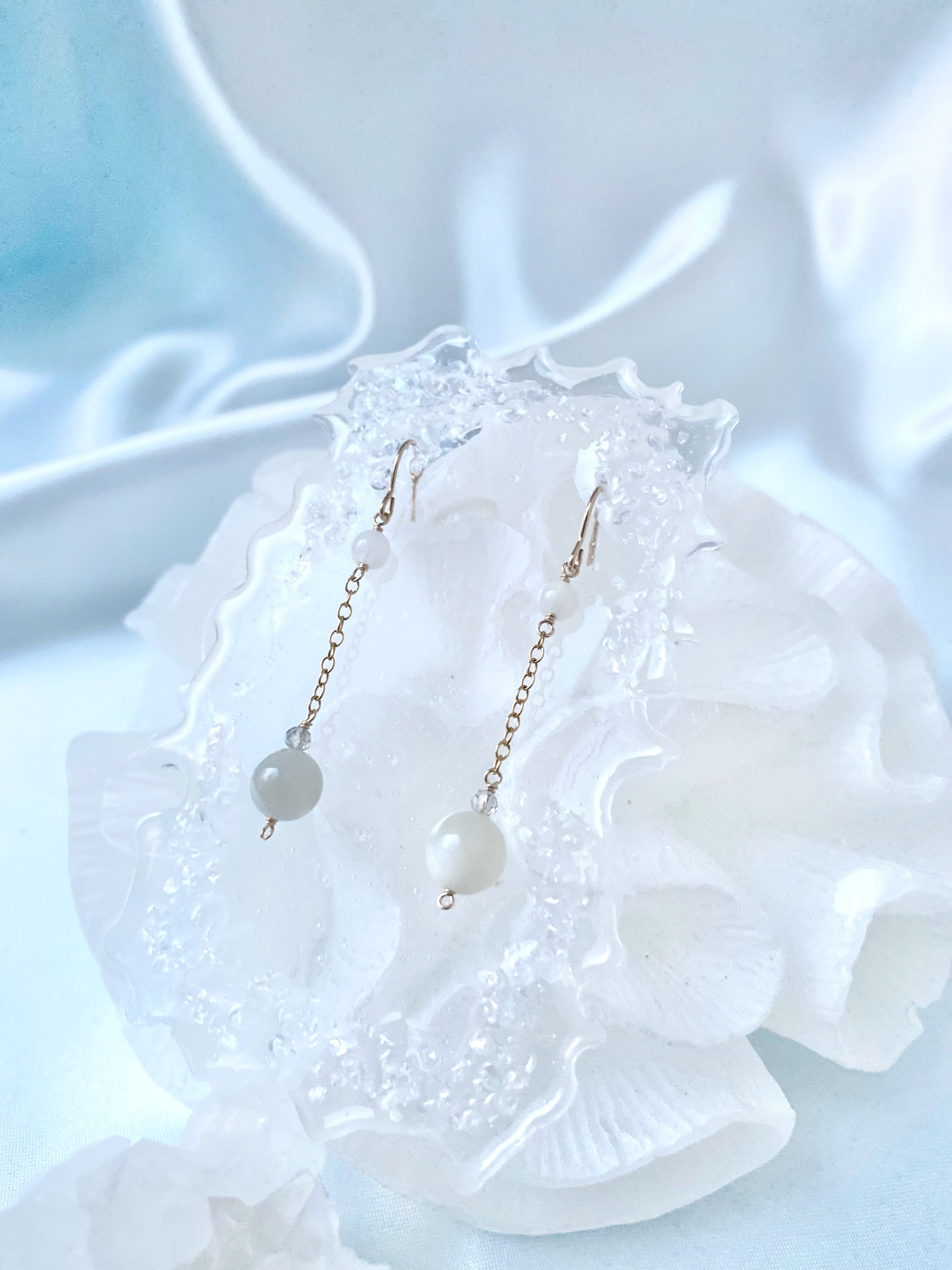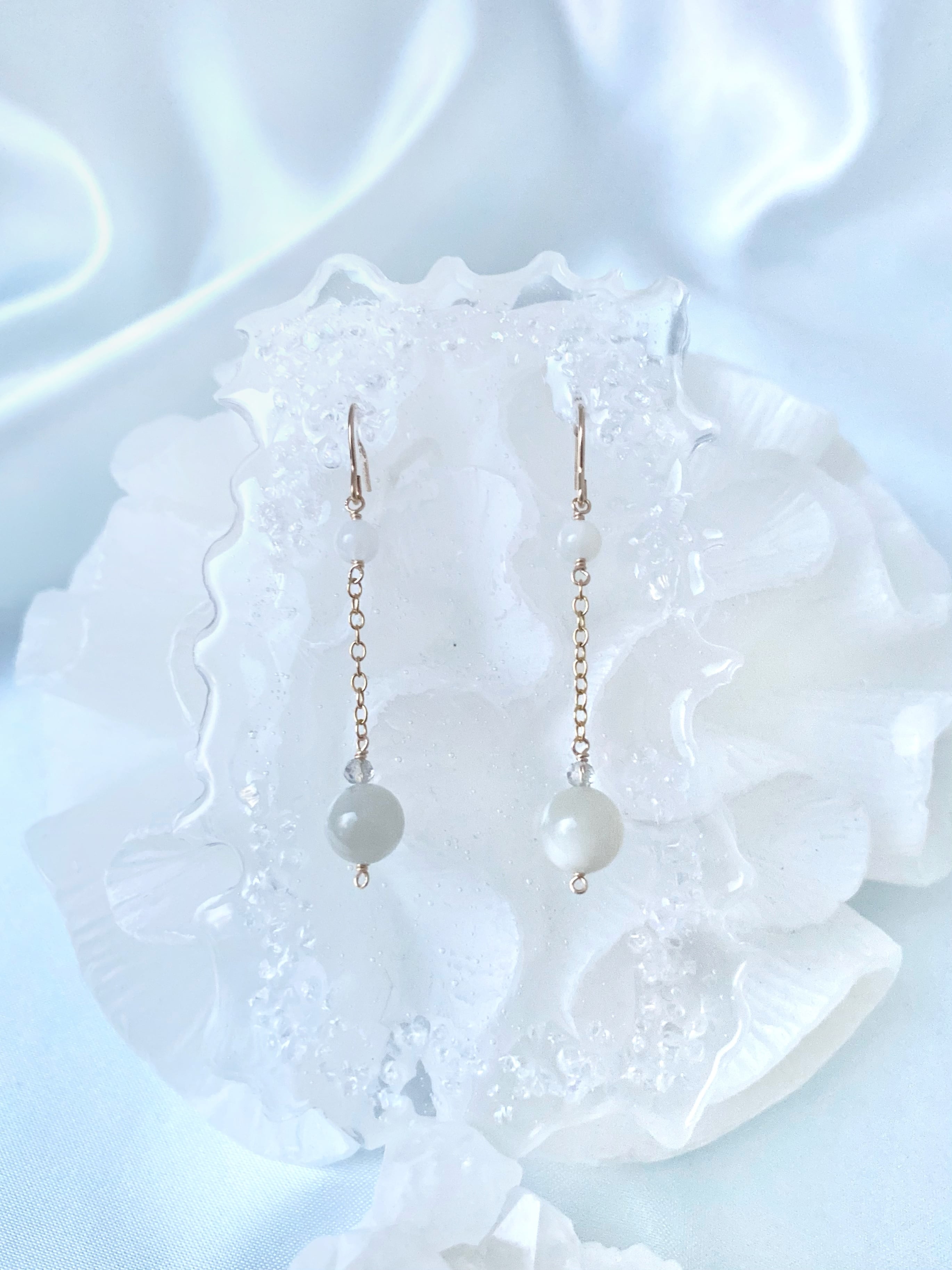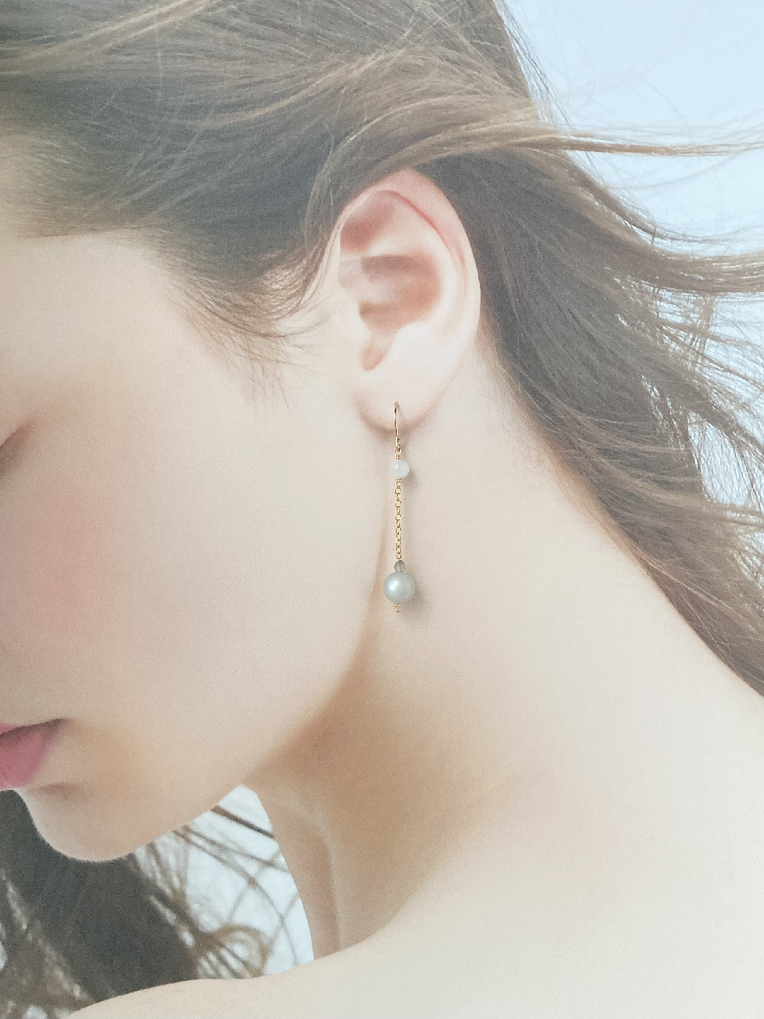 【小さな宝物展】訳あり|グレームーンストーンのピアス【14KGF】※イヤリング変更可
